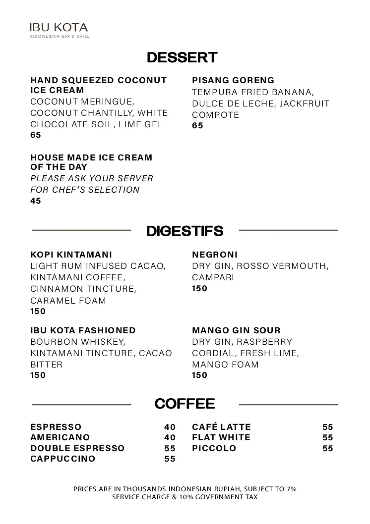 DESSERT AND COFFEE MENU